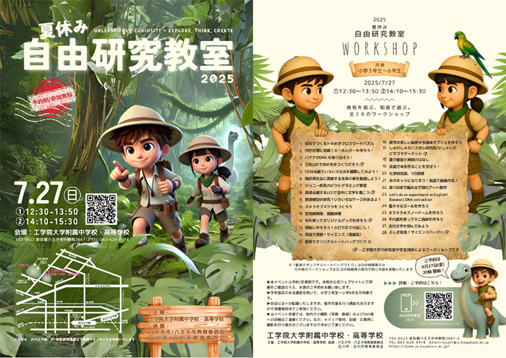 7月27日(日)に工学院大学附属中学校・高等学校で開催される「自由研究教室」に本学教員と学生団体が参加します。