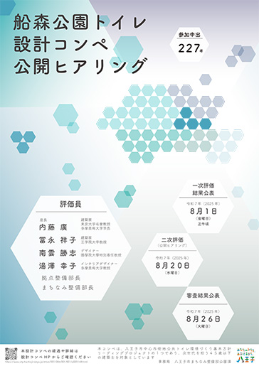 本コンペは、「八王子市中心市街地公共トイレ環境づくり基本方針」のリーディングプロジェクトのひとつで、次世代を担う45歳以下の建築士を対象としたものです。