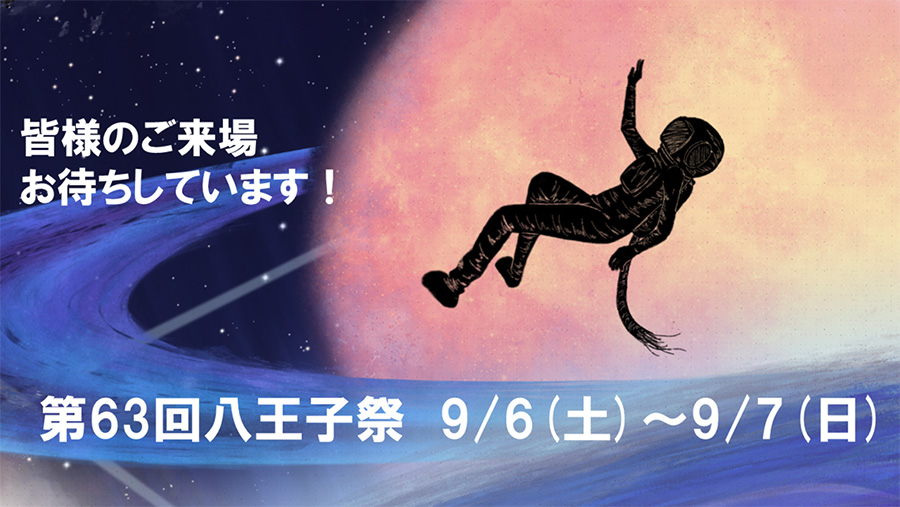 八王子キャンパスにおいて第63回八王子祭を開催します。今年の八王子祭のテーマは「宇宙旅行」です。学園祭全体を宇宙に見たて、来場者の皆様にはさまざまなイベントや模擬店、教室展示を”旅行”して楽しんでいただきます!八王子キャンパスの特性を活かして創られる世界観をお楽しみください!