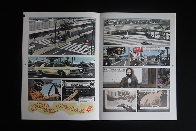 冨永教授はこの著書の中で主に漫画を担当しており、アメリカで戦後花開いた新しい建築(アルミ建築・グーギー建築など)を紹介しつつ、リサーチの旅の臨場感を漫画で伝えています。