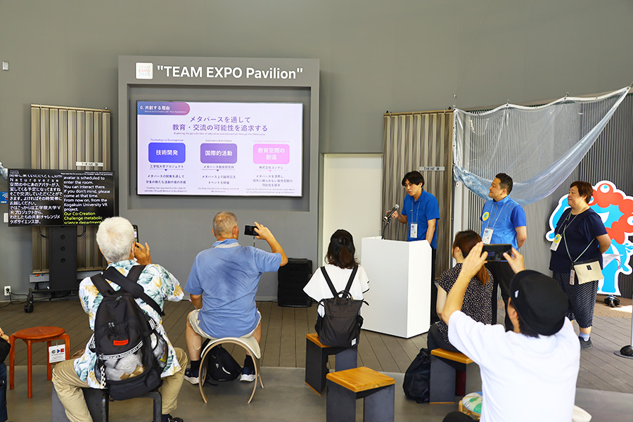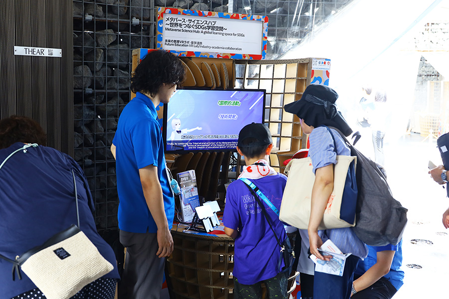 7月18日(金)の参加では、「TEAM EXPOパビリオン」にて、メタバース教育研究所および株式会社コングレと共に、「メタバース・サイエンスハブ ~世界をつなぐ SDGs 学習空間~」を開発し、展示を行いました。