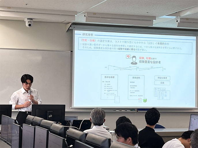 講習では岩村研究室の学生がアシスタントを担当し、受講者のサポートを行いました。講習の合間で研究内容やゼミの成果の発表を実施し、学生にとっても貴重な機会となりました。