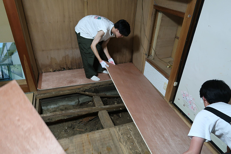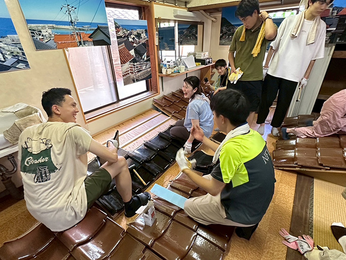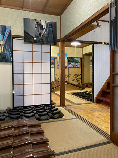 空き家は3年前に小伊津出身の方が冨永研究室に提供してくださったもの、インスタレーションに使った瓦は石州瓦工業組合さんの協賛によるものです。