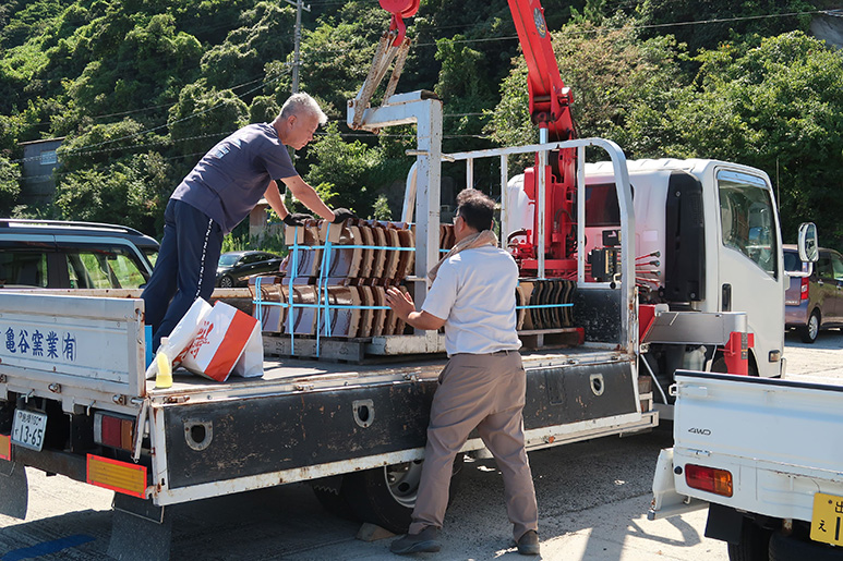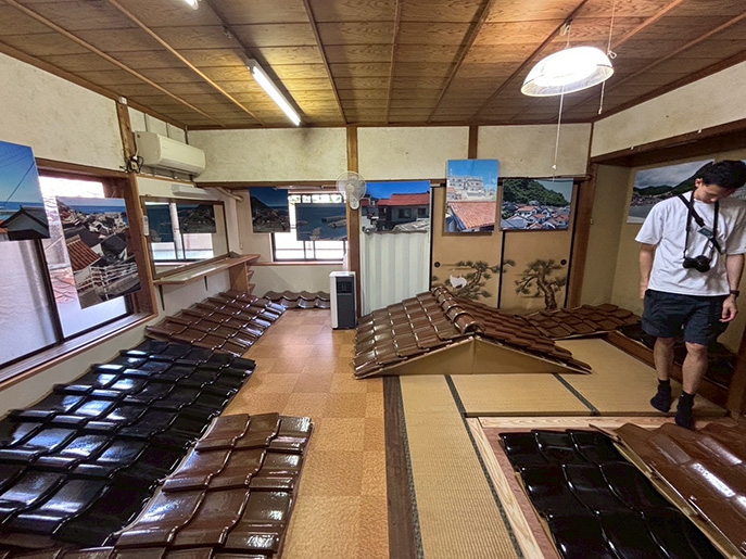 このまち歩きのルート内には、空き家を使った瓦のインスタレーション会場が組み込まれており、小伊津独特の民家の中を通り抜けて展示が見られるようになっています。