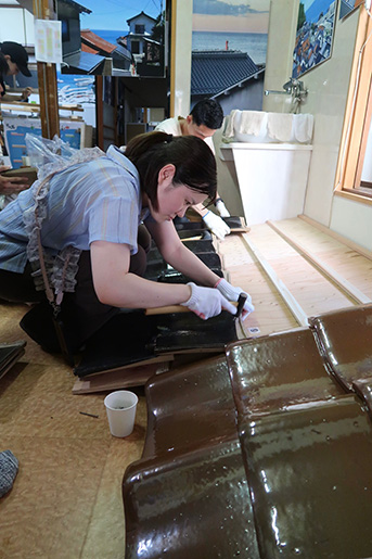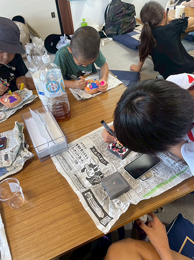 同時に好きな瓦・タイルを選んで色付けするワークショップも開催し、大勢の子供たちでにぎわいました。