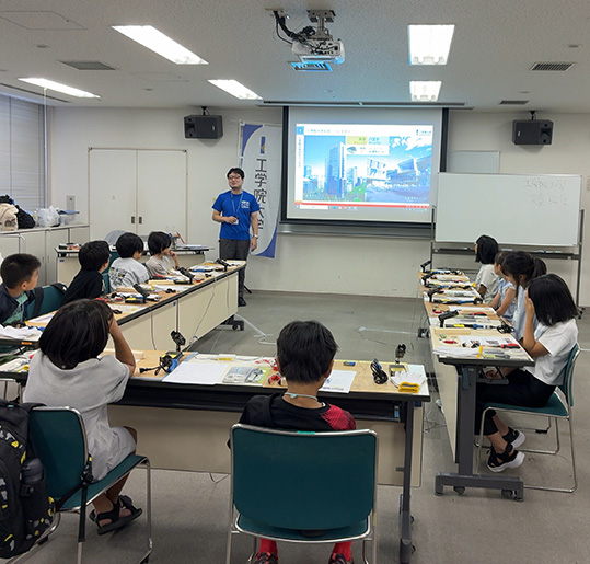 本イベントは八王子市内在住・在学の小学4~6年生を対象に、大学、高専の教員が学校の特色を活かした講座を開講するイベントです。本学からは齊藤亜由子准教授(先進工学部機械理工学科)と米盛弘信准教授(工学部電気電子工学科)が講師を務め、2つの講座を実施しました。