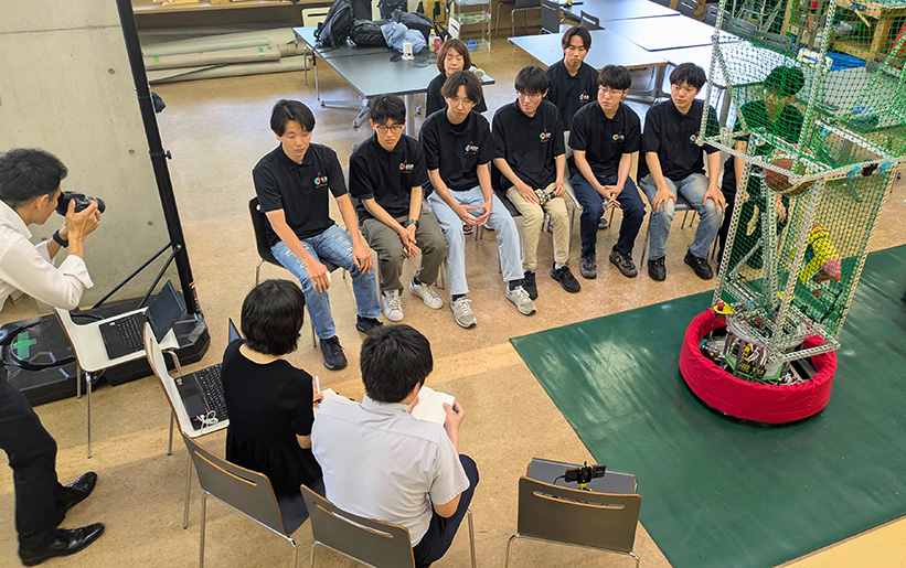 取材当日は、本学卒業生で同社に勤務する社員も取材チームに参加。学生たちのものづくりへの情熱に共感し、在学当時の思い出を交えながら丁寧に取材していただきました。