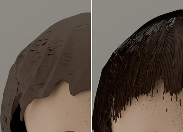デジタル空間のコミュニケーションでは、現実空間でのその人らしさの再現が課題となっています。本技術では、デジタルヒューマン(アバター)の生成において、人の印象に強い影響を与える頭髪に着目。人物頭部の3Dスキャンから半自動で頭髪の3D形状を取得し、細かな髪の毛の形状を軽量なポリゴンで再現することで、少ない計算量で効率的に髪の毛のツヤやアニメーションを表現する方法を開発しました。これにより、人物の特徴を高精度に再現するデジタルヒューマンを製作でき、デジタル空間上でもその人らしさを感じられる豊かなコミュニケーションの実現が期待されます。
