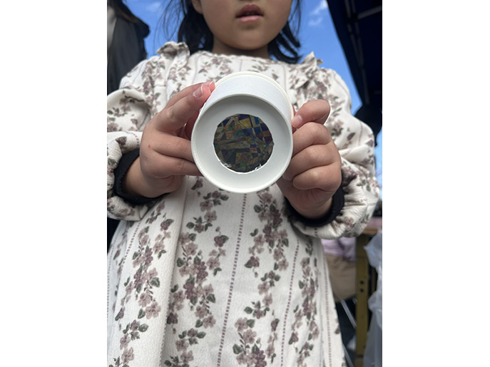 本学からは、「偏光万華鏡作り」、「金属ハンマーでたたいて延性と発熱を実感する演示」、「ネームプレート作り体験教室」の3つの体験コーナを出展しました。大人から子どもまで一緒に体験できる内容で、わずか2時間で受付終了となる盛況ぶりでした。