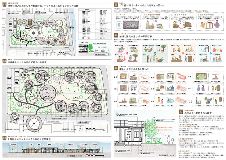 本提案は「まちに開いたみんなの森」と「木樽文化に由来する園舎」という明確な二軸を据え、保育園に関わる多様な利用者の視点から検討を行い、それらを建築空間として的確に表現している点が評価されました。