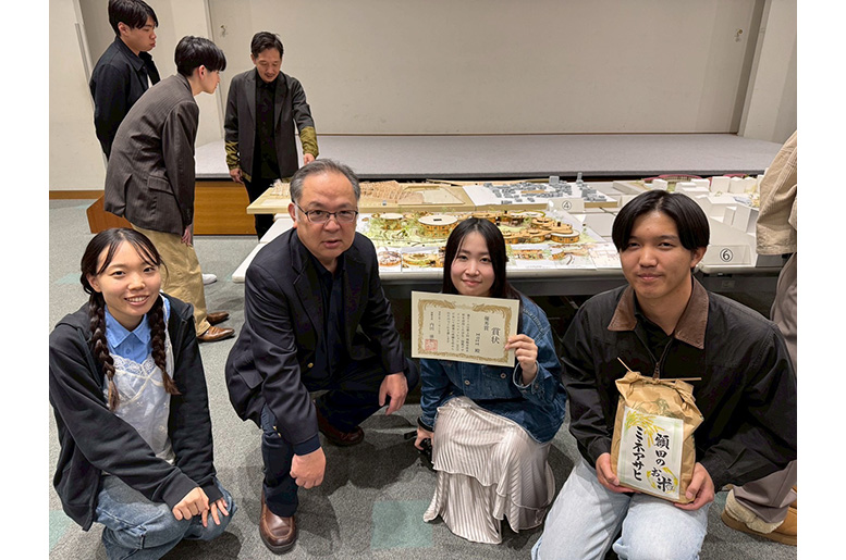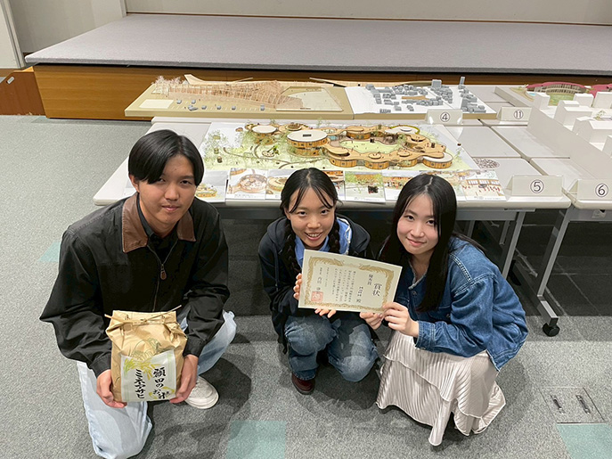 11月15日、第3回 岡崎市産木材を活用した学生・建築デザインコンペティション2025にて、工学研究科建築学専攻修士1年の金井美樹さん(冨永研究室)、松井美里さん(山﨑研究室)、武井央太さん(大内田研究室)のグループの作品が優秀賞を受賞しました。