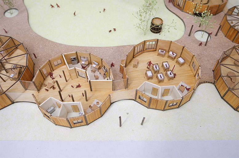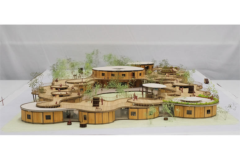木造や木材の扱いなど、学校の課題では踏み込めない深度まで設計を検討する必要があり大変でしたが、森林散策やワークショップで学んだ木材の知識を生かし、木だるの構法を応用した新しい木造提案に挑戦することができました。仲間と協働して試行錯誤を重ねる中で多くの学びを得る貴重な経験となりました。
