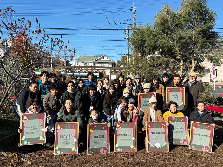 遠藤新研究室の学生たちは、マーケット全体の企画・運営に主体的に携わり、地元団体 ふらっと新百合ヶ丘と連携しながら、出店者への声かけや行政手続き、会場レイアウト、情報発信などイベント運営の中心的な役割を担っています。