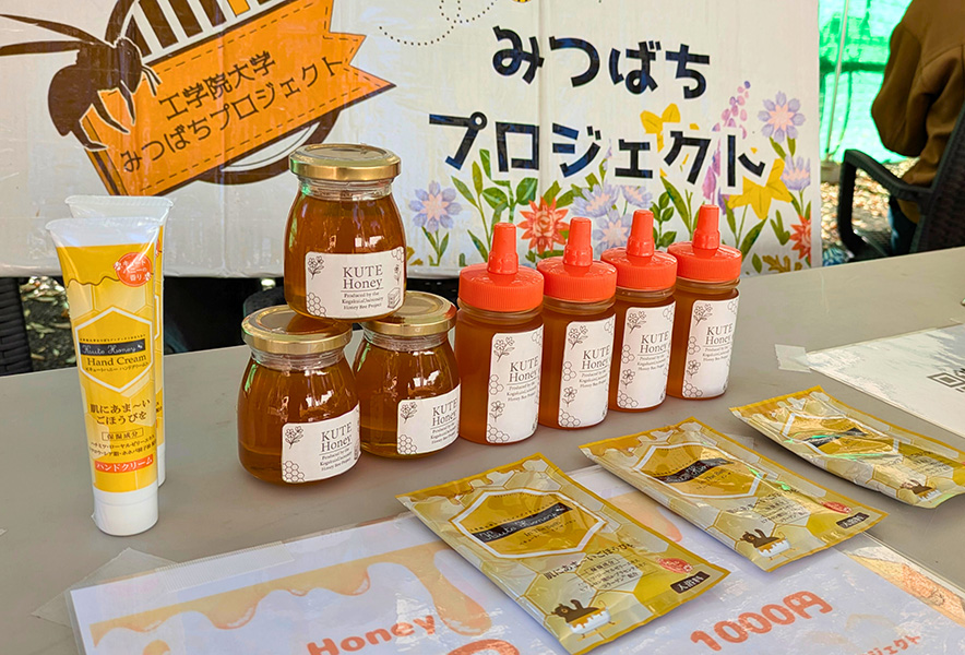 当日は多くの家族連れでにぎわう中、みつばちプロジェクトは大学で採れた蜂蜜やバスソルトなどの販売を行い、養蜂や採蜜の仕組みや活動内容を来場者に紹介しました。学生が主体的に地域イベントへ参加したことで、大学の学びを社会に還元する機会となり、今後の活動に向けた新たな視点や学びも得られました。
