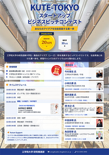 工学院大学は、2026年1月13日に、本学新宿キャンパスにてKUTE-TOKYOスタートアップビジネスピッチコンテストを開催します。
