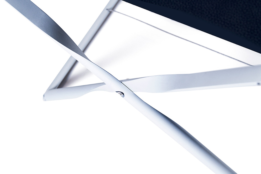 受賞作品は、開くとX脚、閉じると1本のフレームになる、持ち運びが容易なアルミプロペラスツールです。