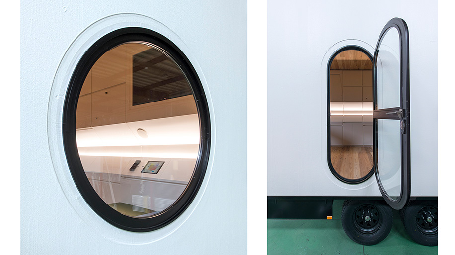内装には、回転式の丸窓やデスク、ベッド、Wi-Fi スピーカー、チューナーレステレビなどを備え、現代のライフスタイルに対応した快適な空間を実現しています。ノマドワークやグランピングなど、多様な用途での活用が期待されます。