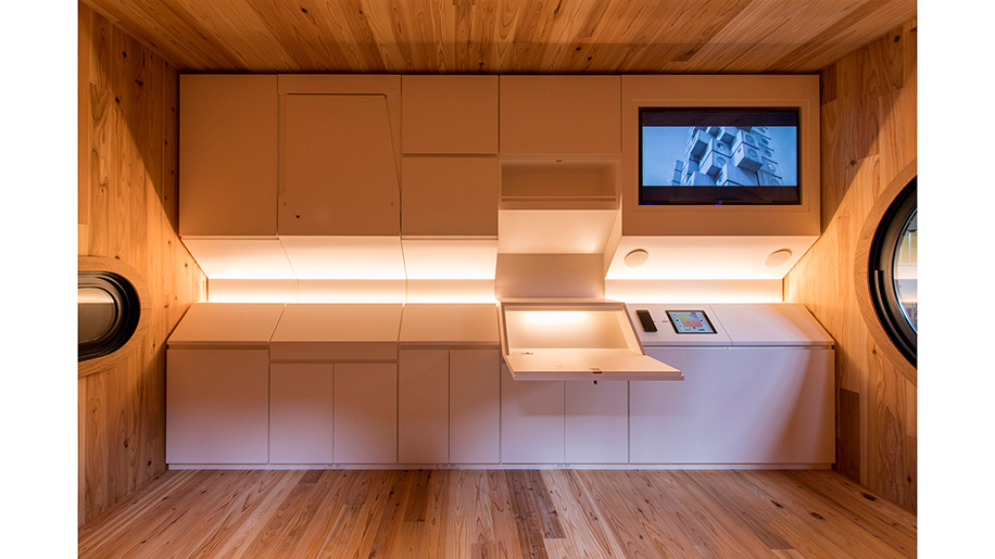 CLTトレーラーは、1972年に黒川紀章氏が東京・銀座に設計し、2022年に解体された「中銀カプセルタワービル」のカプセルをもとにリ・デザインしたトレーラーハウスです。メタボリズムの思想を受け継ぎ、CLT(直交集成板)を用いて木造トレーラーとして移り変わる時代のニーズに適応させ、これからのカプセル建築の在り方を再定義しました。CLTは断熱性・耐火性に優れ、日本産スギ材を使用したことで環境負荷の低減にも寄与しています。