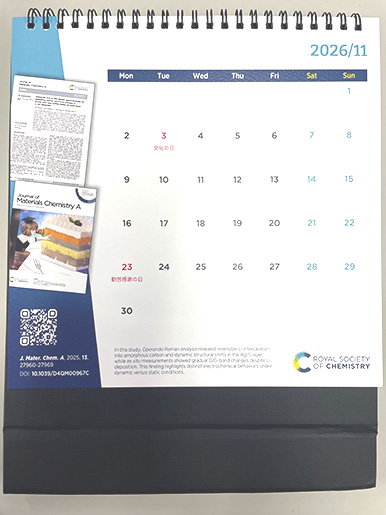 英国化学会は世界的に高い認知度を有しており、本カレンダーを通じて、当該論文紹介とあわせて広く発信されることになりました。