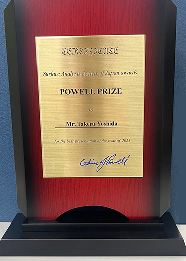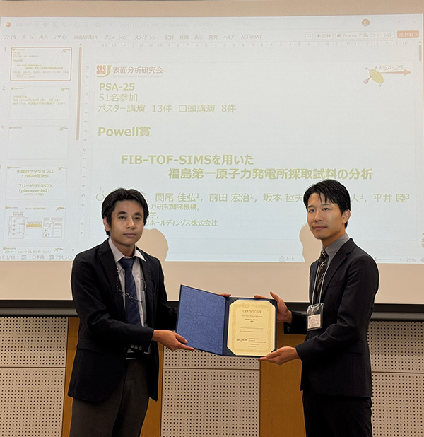 2025年11月17日から18日に開催された「実用表面分析講演会(PSA-25)(主催:一般社団法人 表面分析研究会)」において、電気・電子工学専攻博士後期課程2年の吉田健さん(物質計測制御研究室・坂本哲夫教授)が、福島第一原発の廃炉工程に重要な役割を果たす分析装置の開発について発表し、参加者からの投票により、Powell賞(1位)を受賞しました。