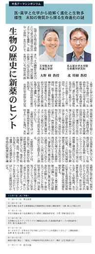 3月17日から20日に開催される「日本化学会第106春季年会(2026)」の中で、シンポジウムのひとつである中長期テーマシンポジウム「医・薬学と化学から紐解く進化と生物多様性」において、大野修教授(生命化学科)が登壇します。