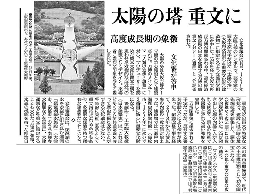 読売新聞に、「太陽の塔」の重要文化財指定に関する後藤治教授のコメントが掲載されました