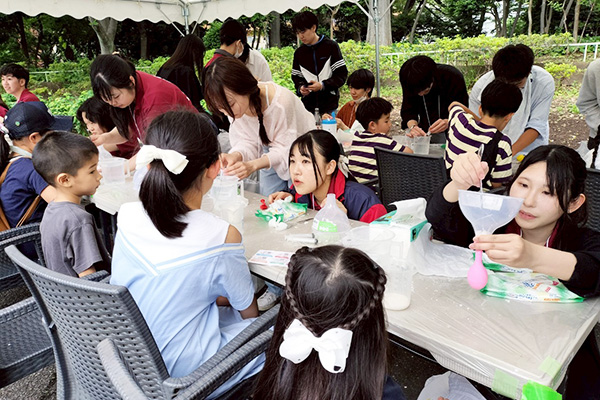 伸びるスライムと伸びる列、大賑わいの科学実験!