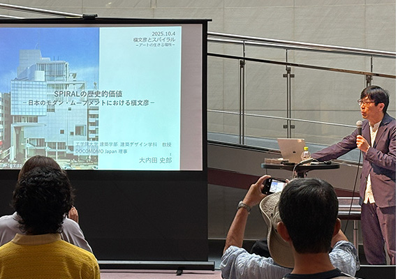 澤岡清秀名誉教授と大内田史郎教授(建築デザイン学科)がスパイラル40周年記念展に登壇