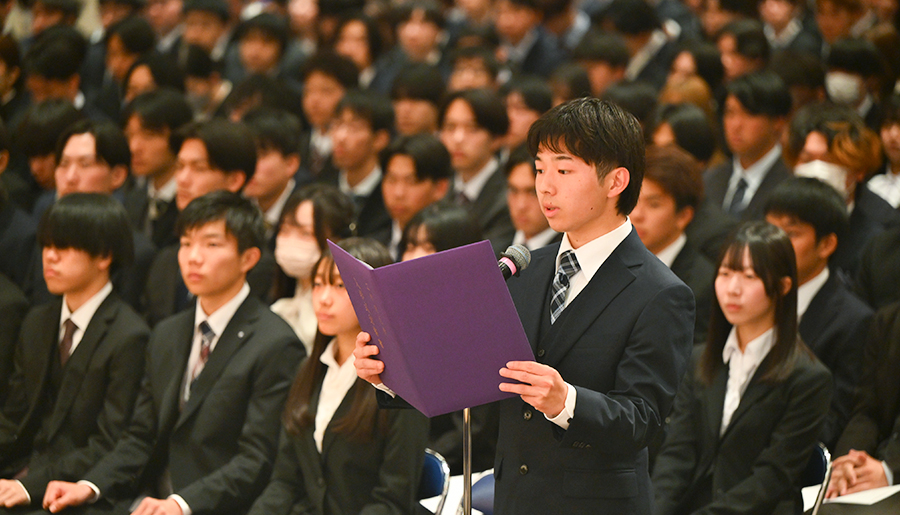 また、入学生宣誓では、建築学部の小林周史さんが新入生を代表し、これからの学生生活への抱負を述べました。