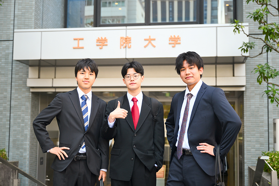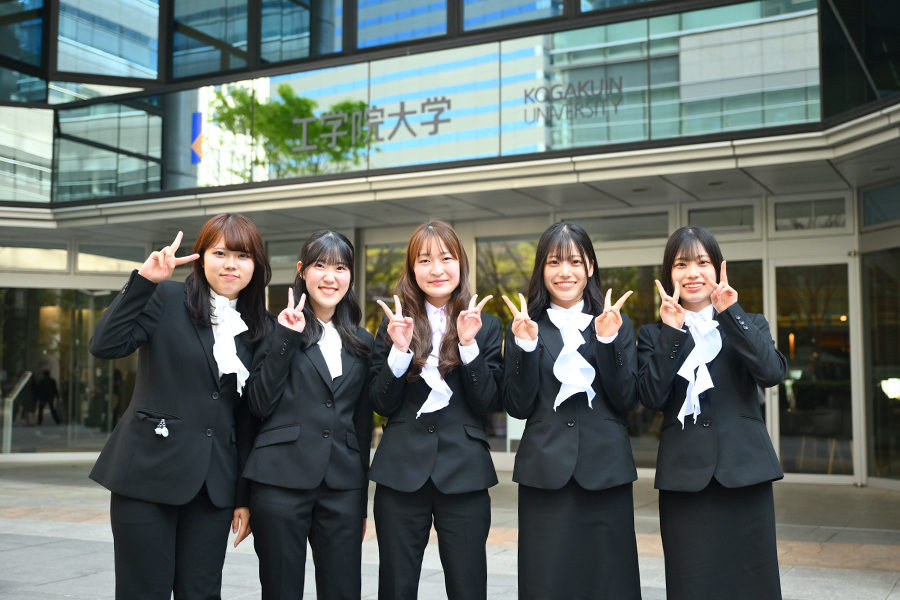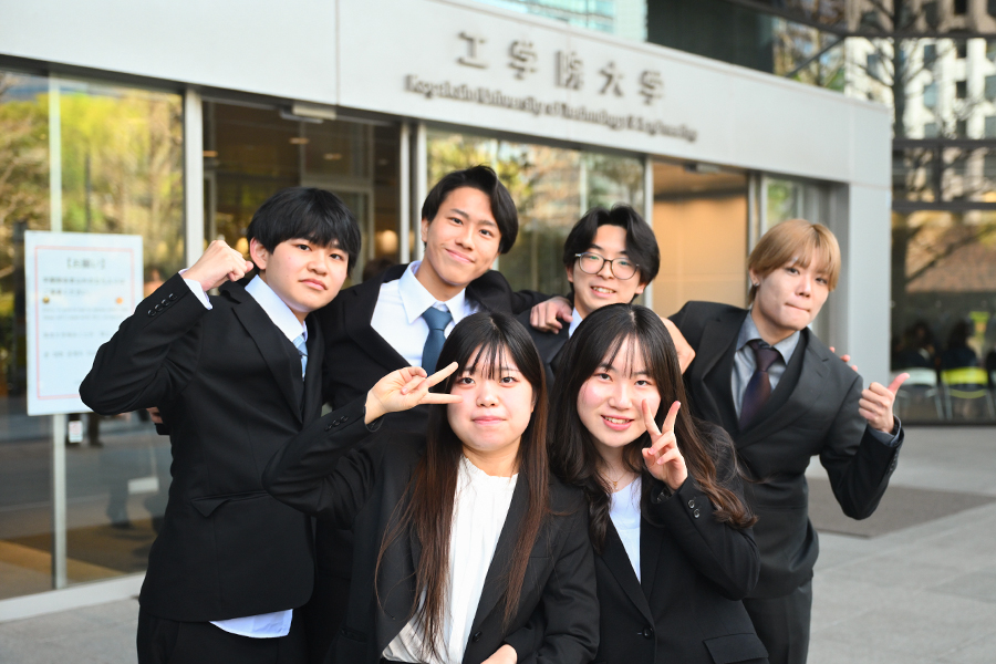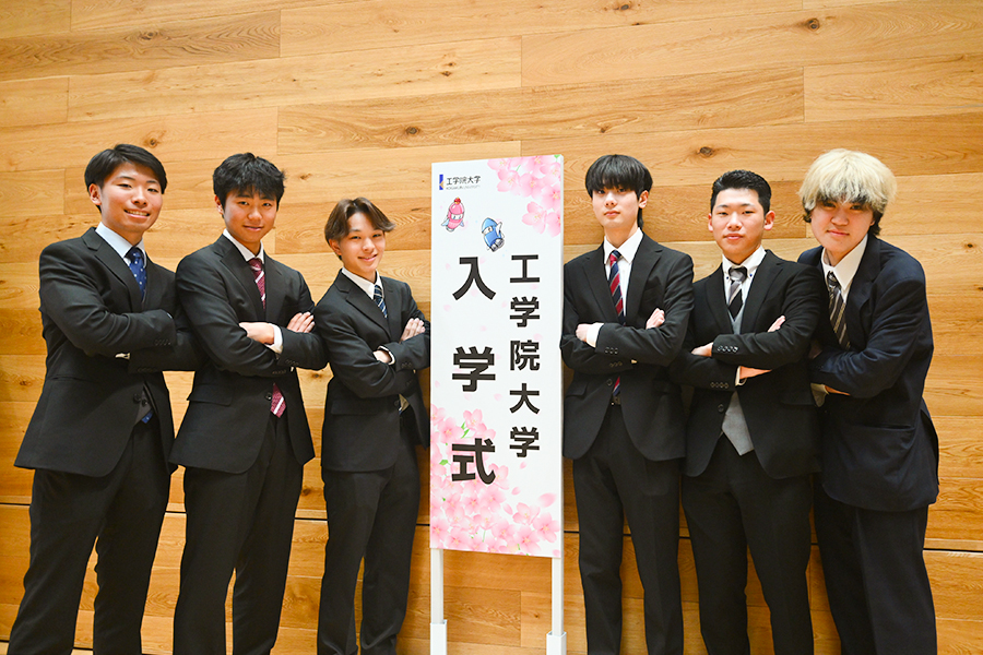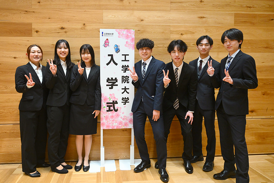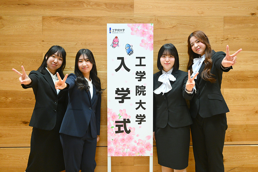 式典終了後には、隣接する工学院大学新宿アトリウムに設置されたフォトスポットにおいて、多くの新入生が記念撮影をしていました。