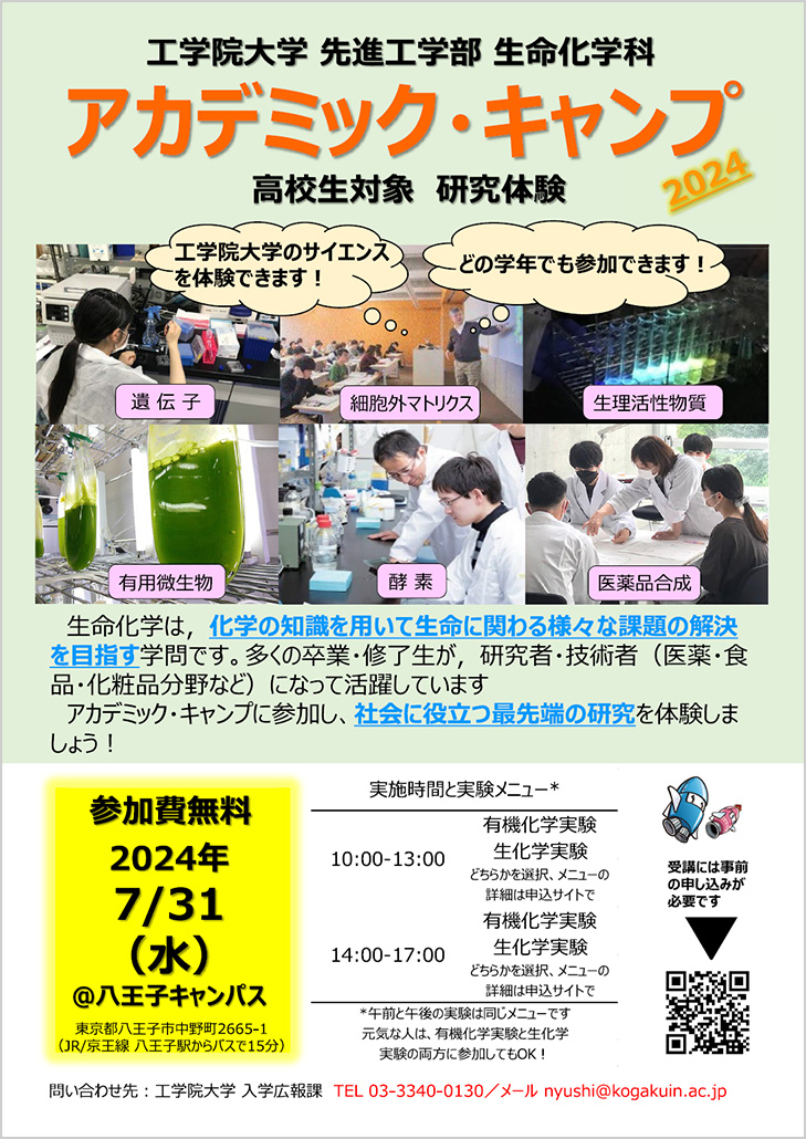 先進工学部 生命化学科 アカデミック・キャンプ