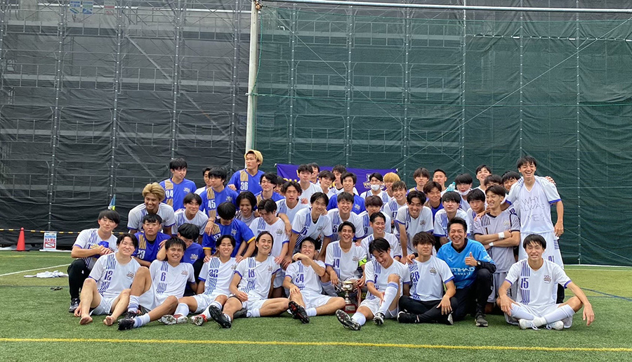 こんにちは、サッカー部です。サッカー部は八王子キャンパスの人工芝グラウンドで週に 4回 練習しています。休日は試合や練習を行います。東京都大学リーグ 1部昇格に向け、プレーヤーもマネージャーもより良いチームにしていこうと努力しています。コロナ禍でも各々が自主トレーニングをし、一人一人がチームにできることを考え実行してきました。サッカー部は学年関係なしに仲が良くアットホームな雰囲気の部活動です。コロナ禍で大学生活など不安が多いかもしれませんが、私たちとともに目標に向かって充実したキャンパスライフを過ごしましょう!