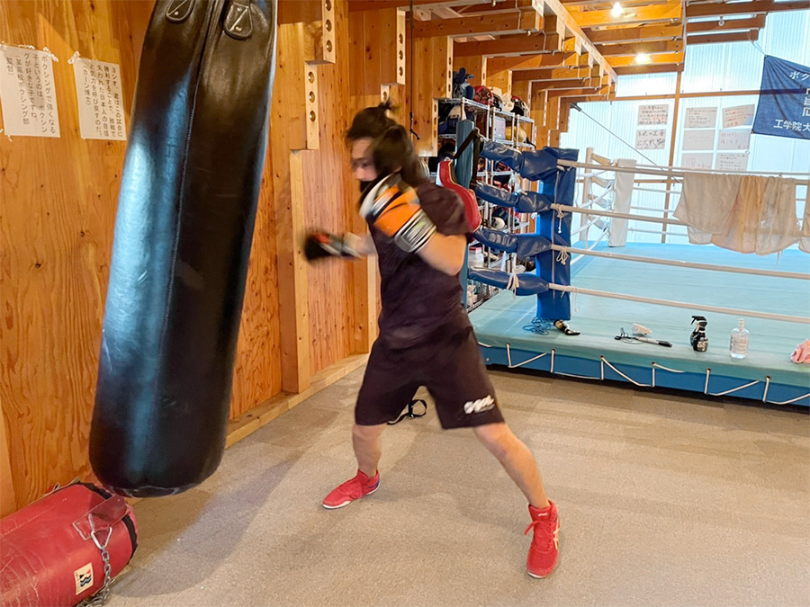 工学院大学の八王子キャンパスには木造のボクシング場があります。ここにはサンドバックやリングはもちろん、バーベルやダンベルといった筋トレ用具も揃っています。ジムに通わなくてもボクシングの練習や筋トレを行うことができます!