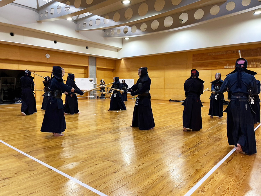 剣道部は、数馬先生のご指導の下、目標である 全日本剣道選手権大会出場に向け日々稽古に励んでいます。また、東京芸術大学の高橋亨先生を師範としてお招きし、基礎を1から学び直すことで、上を目指していくための基礎的な技術、そして部活動内の良い雰囲気が出来上がりつつあります。またOBの先輩方にお越しいただき稽古を付けていただいたり、夏合宿や寒稽古等の行事を通してより一層精進していきたいと考えています。