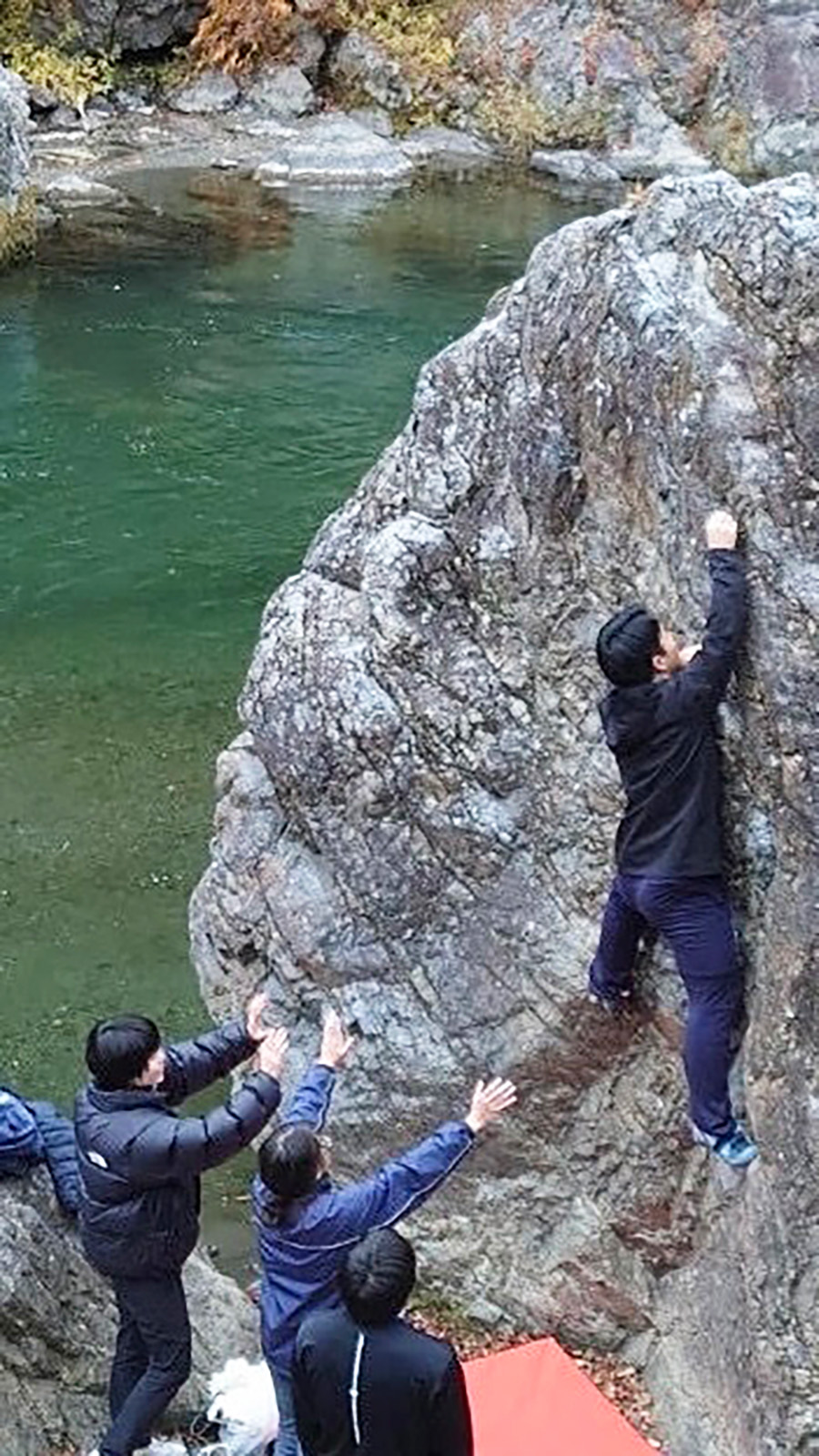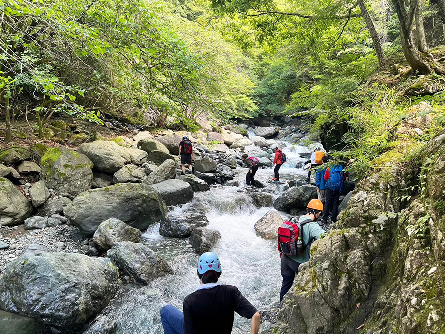 山岳部は現在、登山の他に、スポーツクライミングを中心に明るく楽しくをモットーに活動しています。平日は室内のジムで練習を行っています。休日は普段行かないジムでクライミングの練習をしたり、外の岩を登ったり、リードクライミングという命綱をつけて数十メートルの壁を登ったりしています。夏休みには、登山や沢渡り等の活動も行っています。