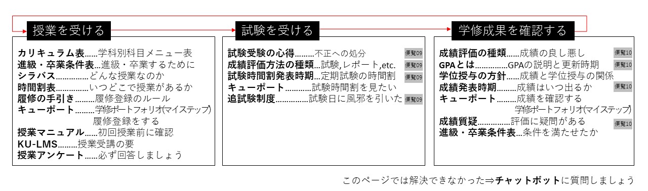 皆さんが充実した学生生活を送るために重要な情報が「学生便覧」に掲載されています。入学してすぐに読むことはもちろん、学年を積んでいく中でも常に確認し、学生生活の「地図」として活用してください。